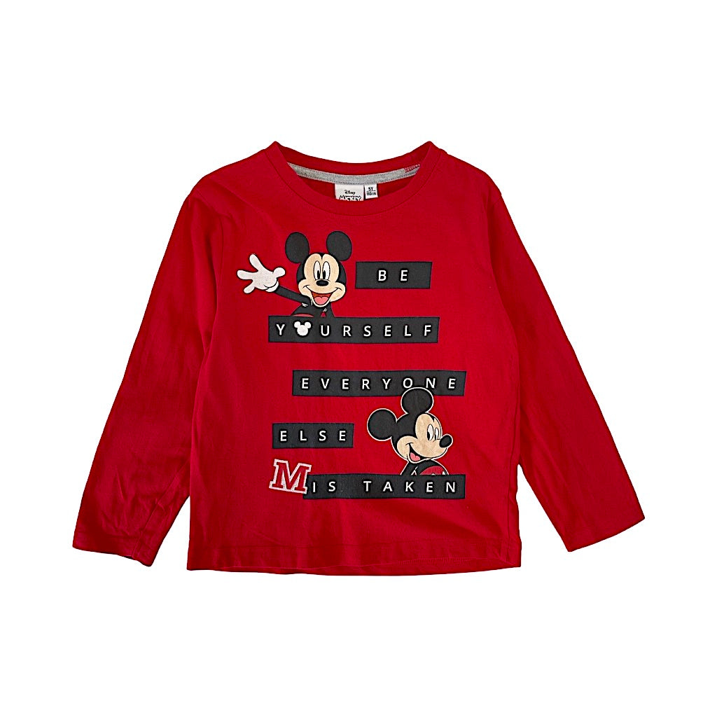Apraksts: "Mickie Mouse" firmas sarkans krekls ar aplikācijām.