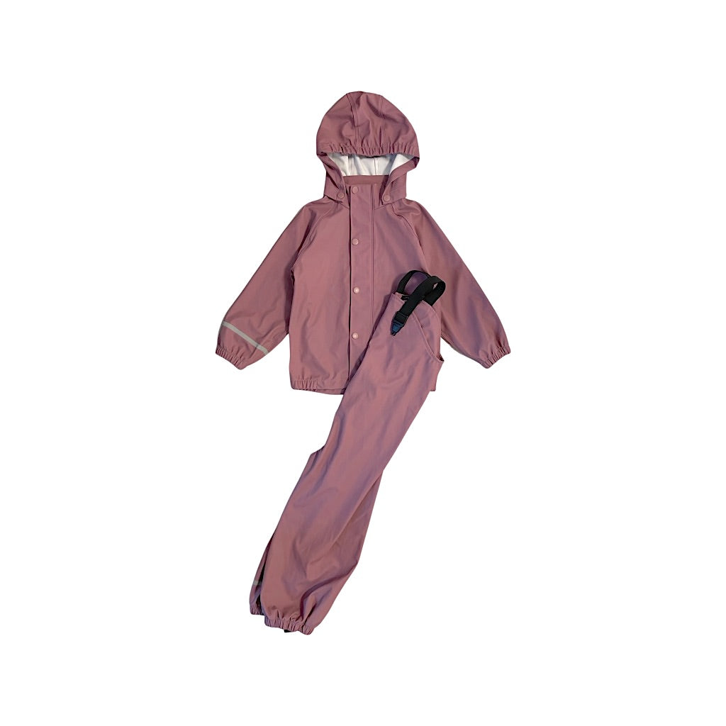 Apraksts: "Name it" firmas divdaļīgs lietus kombinezons. Jaka atdarināma ar rāvējslēdzēju un spiedpogām. Bikses uz lencītēm.