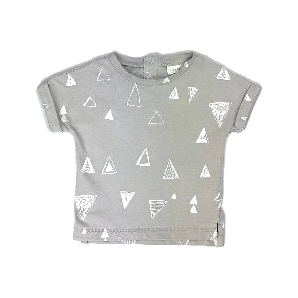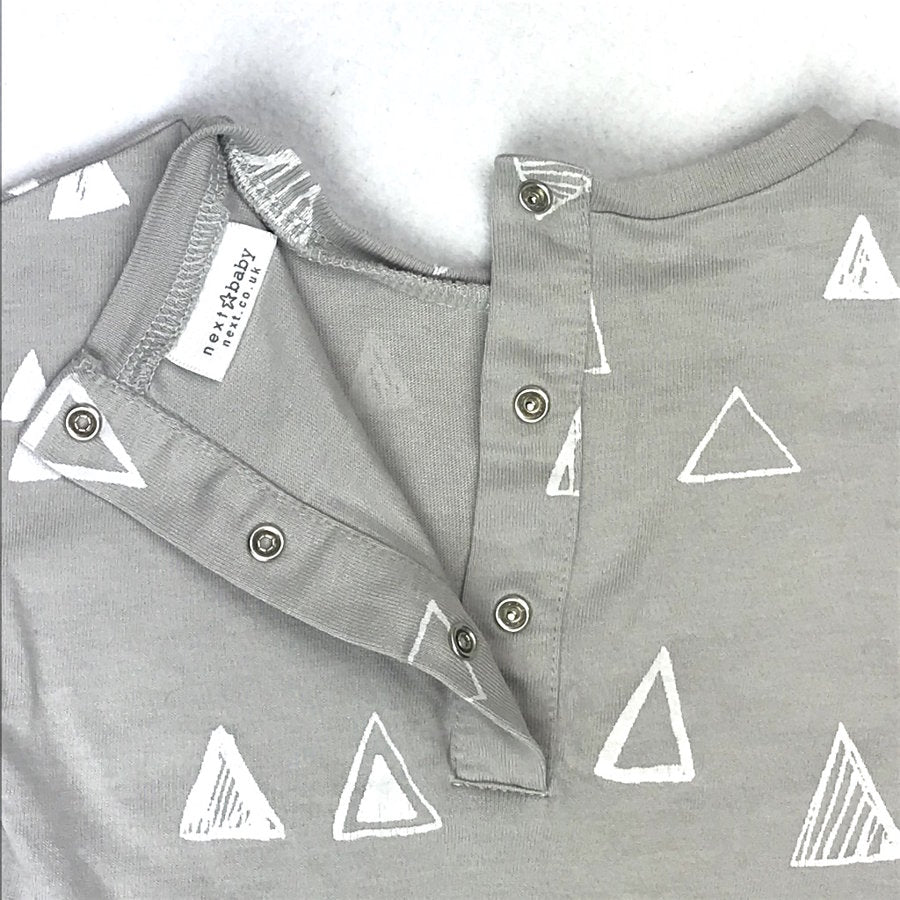 Apraksts: "Next" firmas pelēki brūns T-krekls ar ģeometriskām figūrām. Aizmugure atdarināma ar spiedpogām.