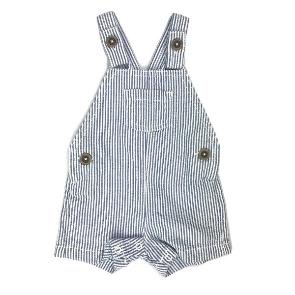 Apraksts: Zils romperis ar baltām svītrām. Apakšdaļa atdarināma ar spiedpogām un plecu daļa atdarināma ar pogām.