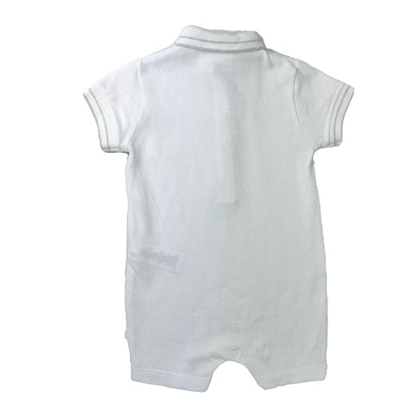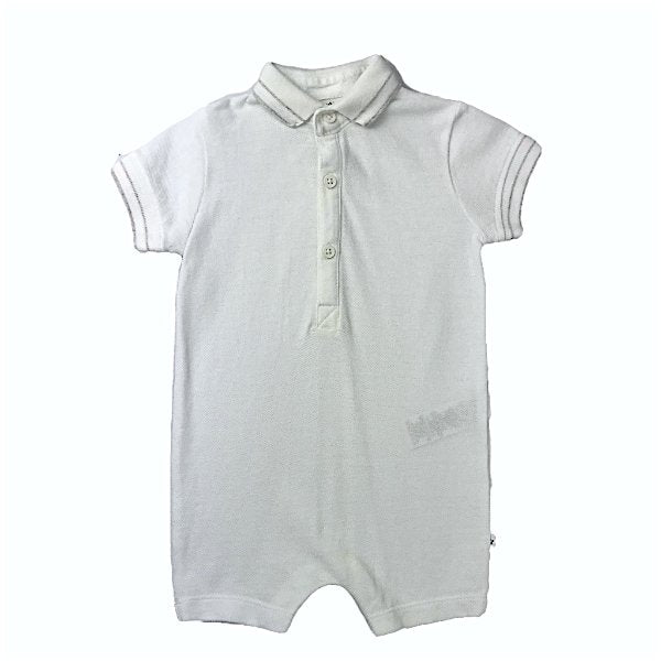 Apraksts: "Next" balts romperis. Krūšu daļa atdarināma ar pogām, apakšdaļa atdarināma ar spiedpogām.