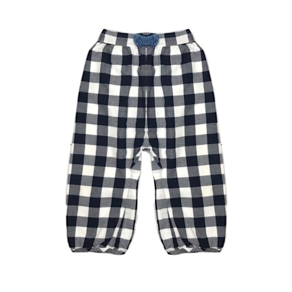 Apraksts: "Marks&Spencers" firmas rūtainas kokvilnas bikses ar bantīti. Bikšu jostas daļa elastīga, komfortablai nēsāšanai.