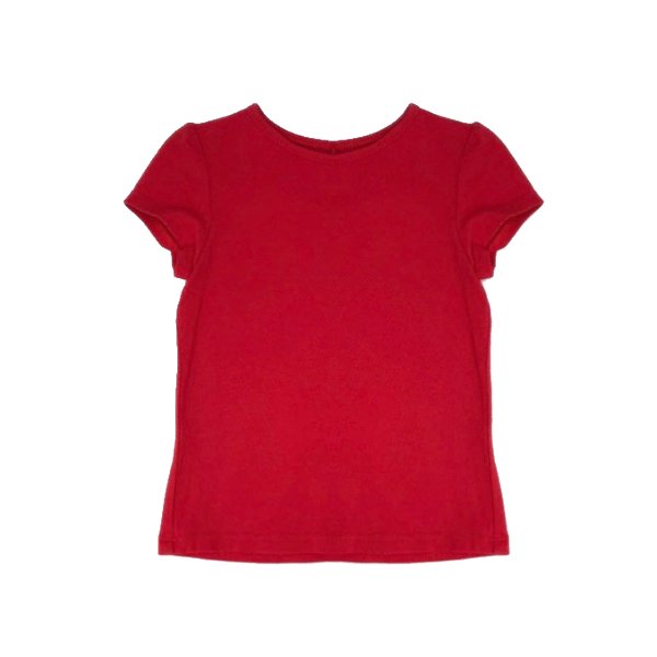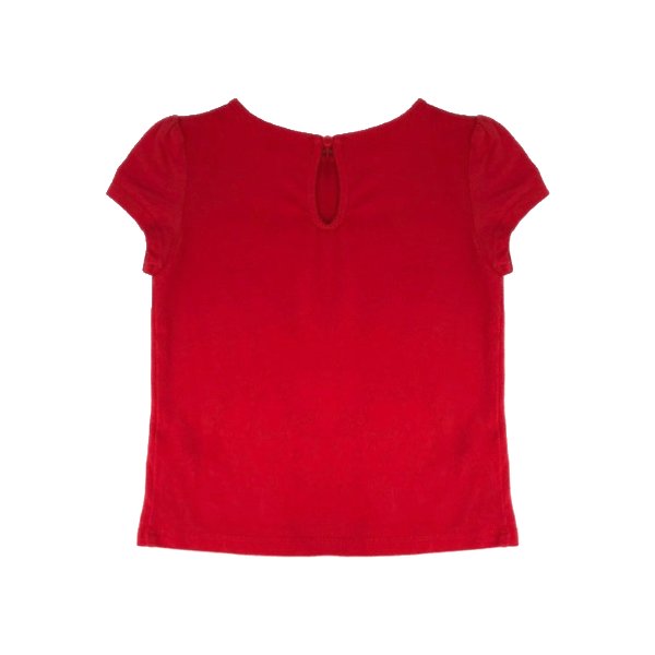 Apraksts: Sarkans kokvilnas krekliņši. Kakla daļa aizmugurē atdarināma ar pogu.