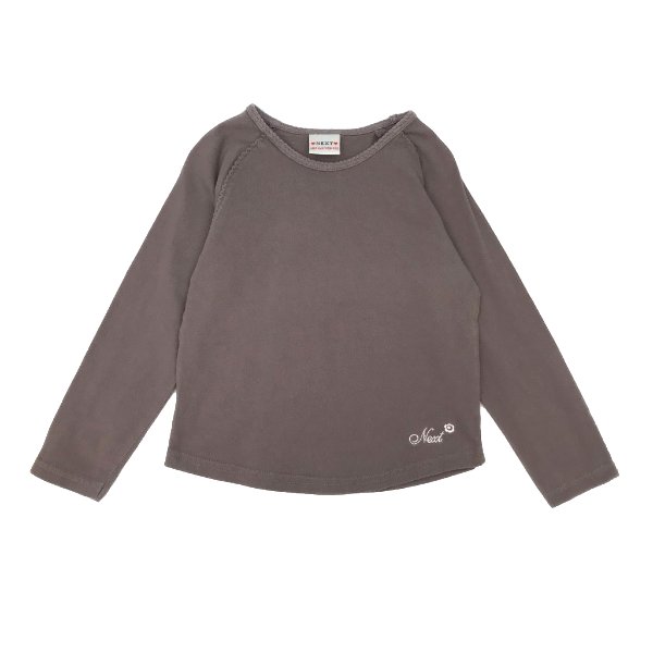 Apraksts: "Next" firmas brūns kokvilnas krekliņš ar izšūtu uzrakstu "Next" un puķīti.