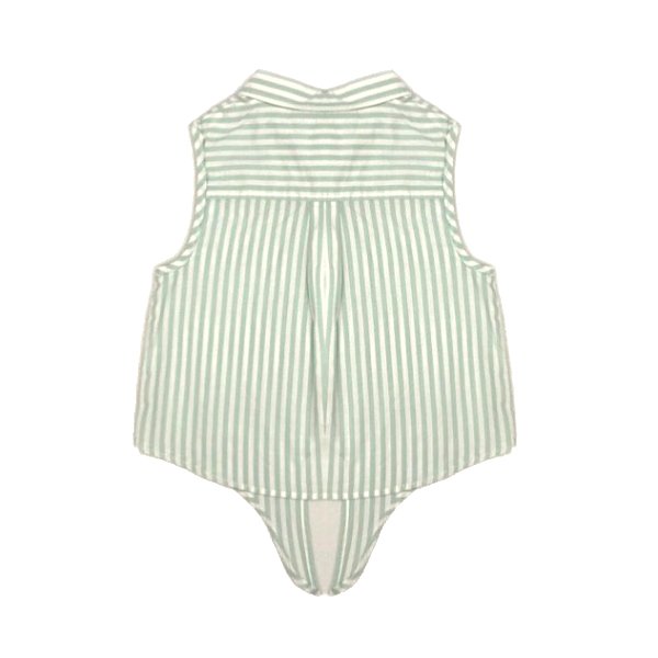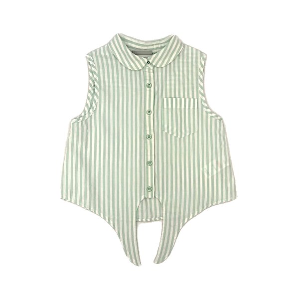 Apraksts: "Matalan" firmas strīpains kokvilnas krekliņš/ blūzīte ar apkaklīti. Atdarināma visā garumā ar pogām, sasienama viduklī.