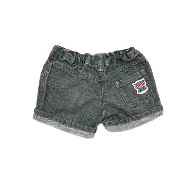 Apraksts: "Marks&Spencers" firmas pelēki džinsu šorti ar Hello Kitty aplikācijāmi. Priekšpuse atdarināma ar pogu.
