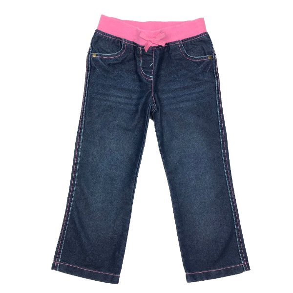 Apraksts: Zilas džinsu bikses ar rozā akcentiem un kabatiņām. Bikšu jostas daļa elastīga, komfortablai nēsāšanai.
