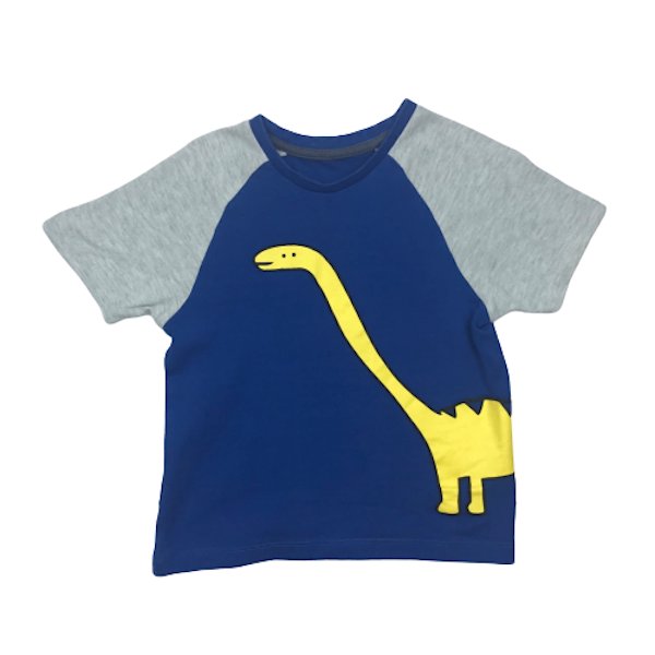 Apraksts: "Mini Club" firmas kokvilnas T-krekliņš ar dzeltenu dinozauru
