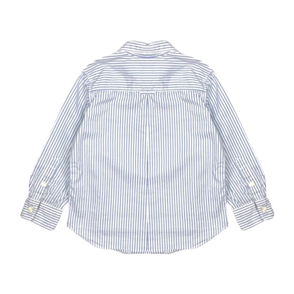 Apraksts: "LOGG" firmas strīpains zils, oficiāla stila kokvilnas krekls ar garām piedurknēm. Atdarināms visā garumā ar pogām.