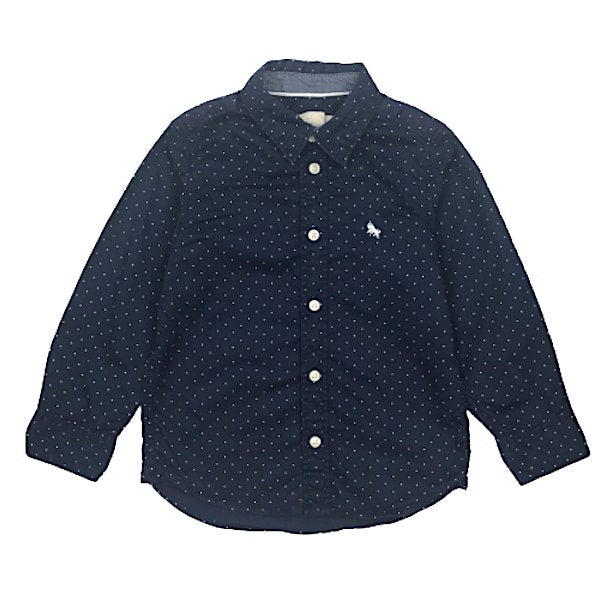 Apraksts: "LOGG" tumši zils, oficiāla stila kokvilnas krekls ar garām piedurknēm. Atdarināms visā garumā ar pogām.