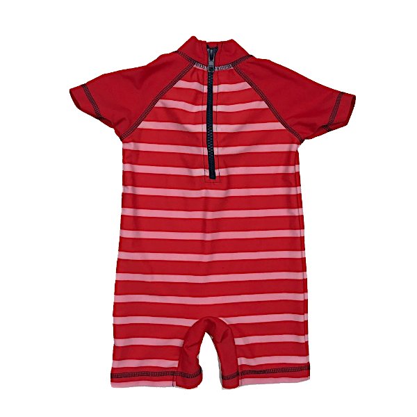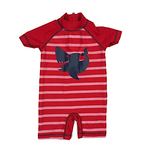Apraksts: "Next" firms sarkans peldkostīms ar haizivi. Kakla daļa mugurpusē atdarināma ar rāvējslēdzēju.