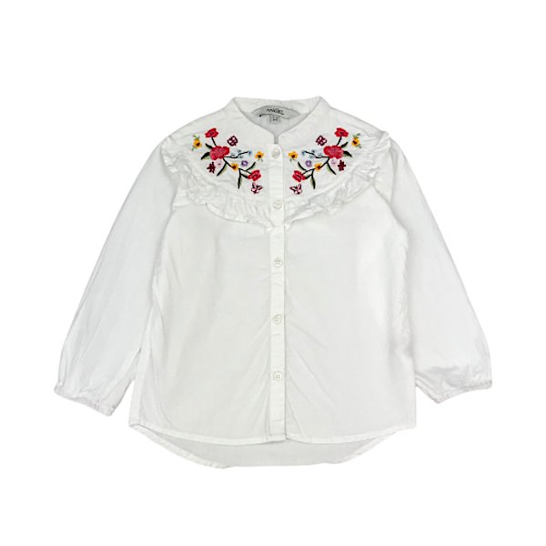 Apraksts: "Evie Angel" firmas balts kokvilnas krekls / blūze ar izšūtiem ziediem. Atdarināma visā garumā ar pogām.