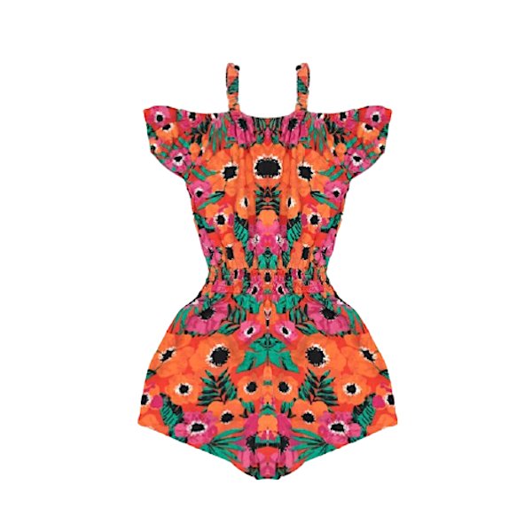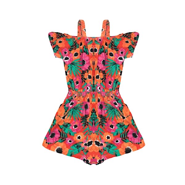 Apraksts: "Evie Angel" firmas puķains bikškostīms / romperis ar lencītēm.
