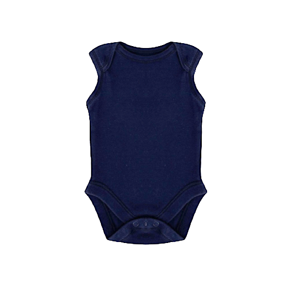 Apraksts: Zils kokvilnas bodijs ar īsām piedurknēm. Apakšdaļa atdarināma ar spiedpogām.