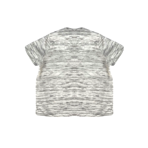 Apraksts: Pelēks T- krekls ar uzrakstu. Kakla daļa sānā, atdarināma ar spiedpogām.