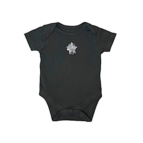 Apraksts: "Disney" firmas tumšs kokvilnas bodijs ar aplikāciju. Apakšdaļa atdarināma ar spiedpogām.