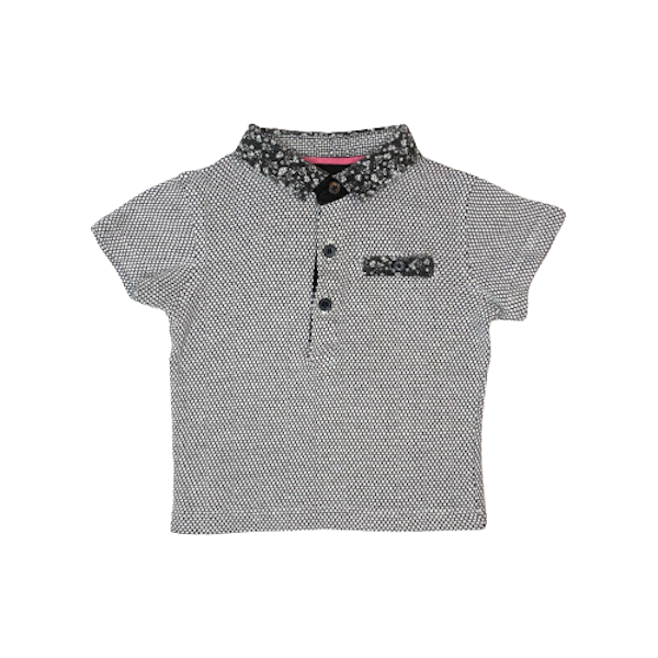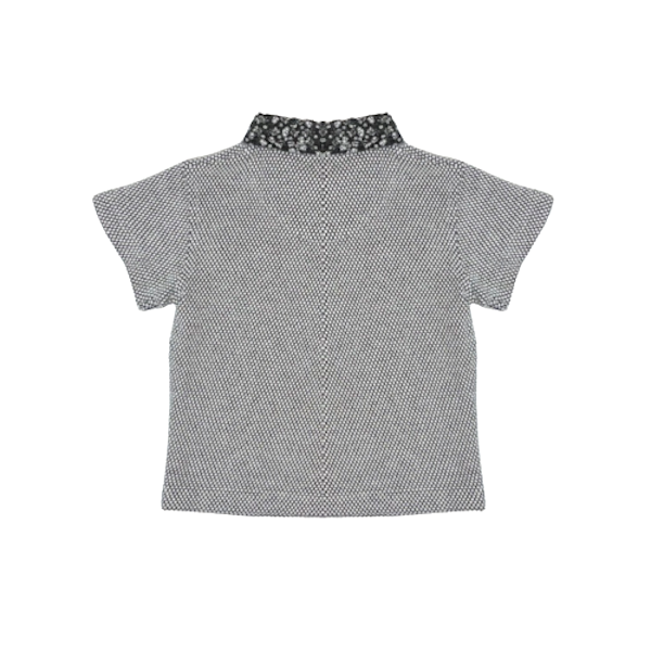 Apraksts: Kokvilnas krekls ar īsām piedurknēm un krūšu kabatiņu. Kakla daļa atdarināma ar pogām.