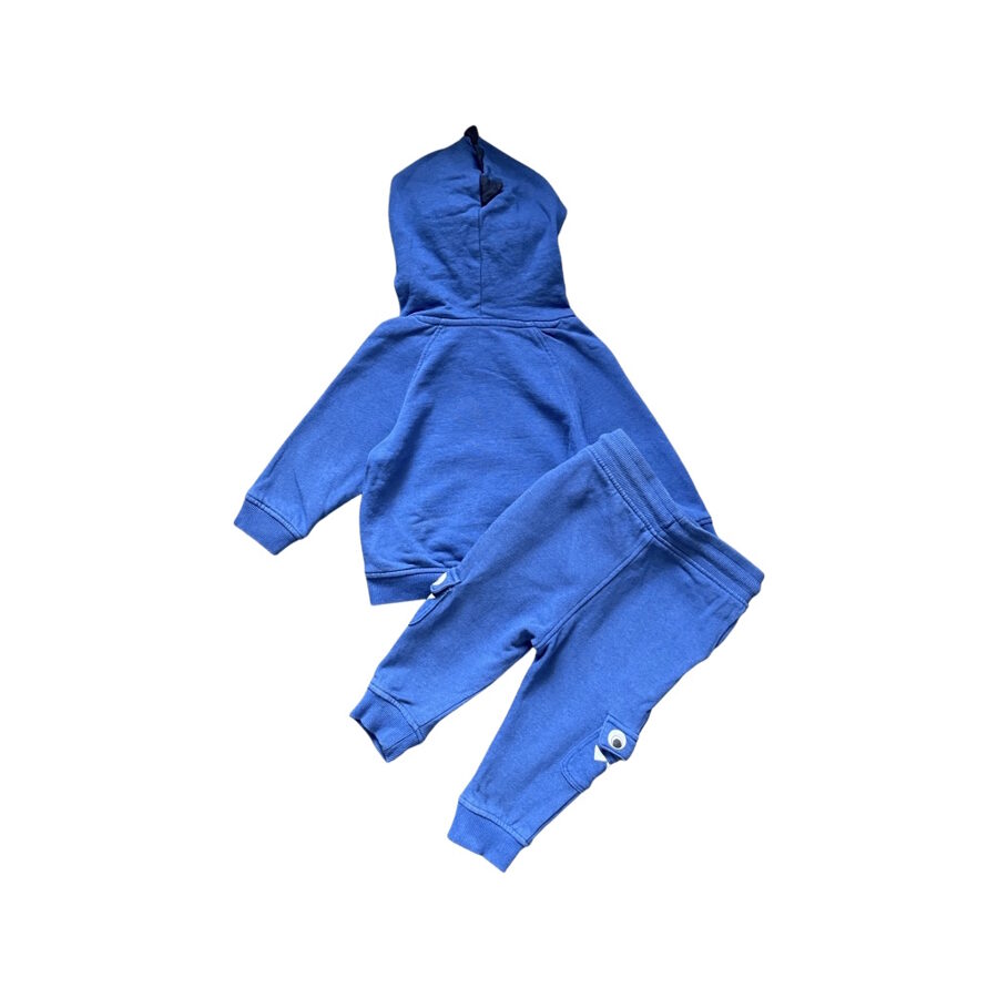 Apraksts: "Matalan" firmas silts, divdaļīgs komplekts. Zils džemperis ar kapuci un uzrakstu. Bikšu jostas daļa elastīga, komfortablai nēsāšanai.