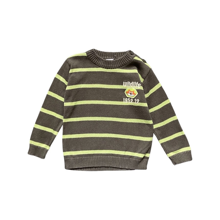 Apraksts: "Baby Club" firmas džemperis ar uzrakstu un aplikāciju. Kakla daļa sānā atdarināma ar pogām.