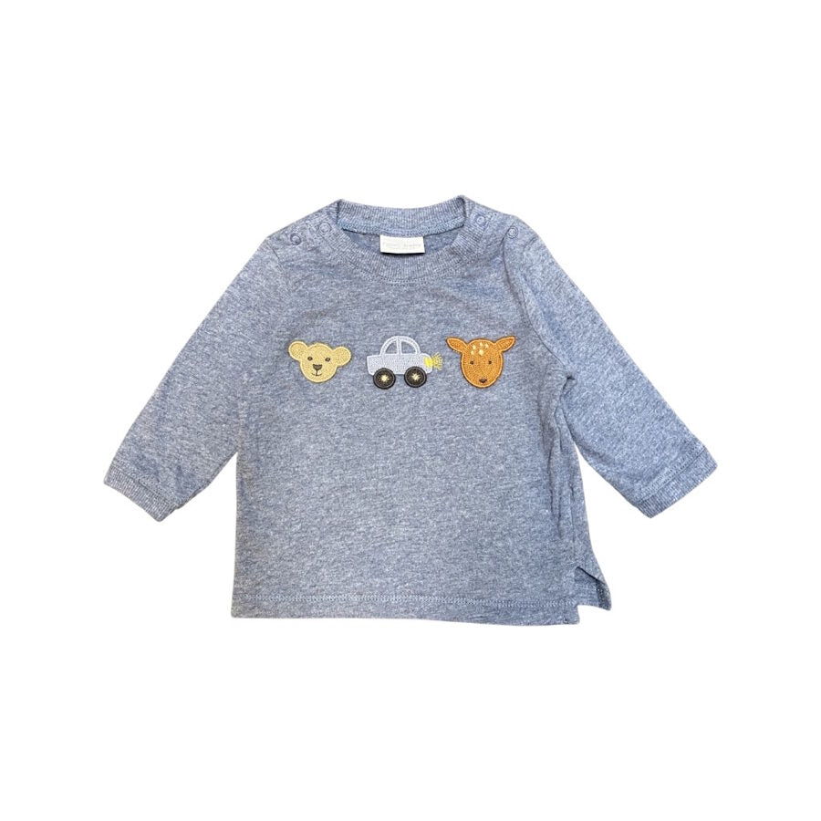 Apraksts: "Next" firmas zils kokvilnas krekliņš ar aplikācijām. Kakla daļa sānā atdarināma ar spiedpogām.
