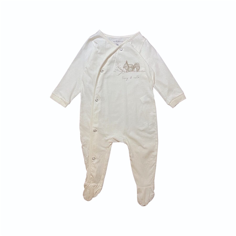 Apraksts: "Fox&Bunny" firmas kokvilnas rāpulis ar aplikāciju. Atdarināms visā garumā ar spiedpogām.