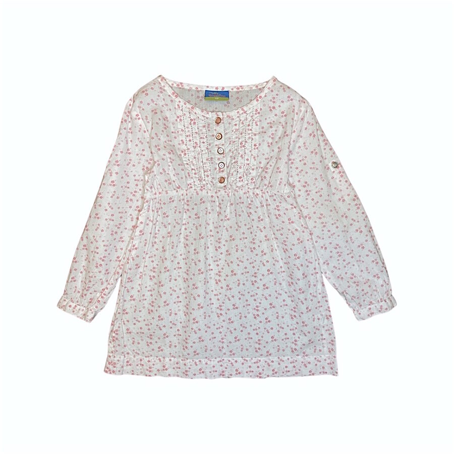 Apraksts: "Topolino" firmas viegla kleitiņa ar rozā ziedu akcentiem. Kakla daļa atdarināma ar spiedpogām.