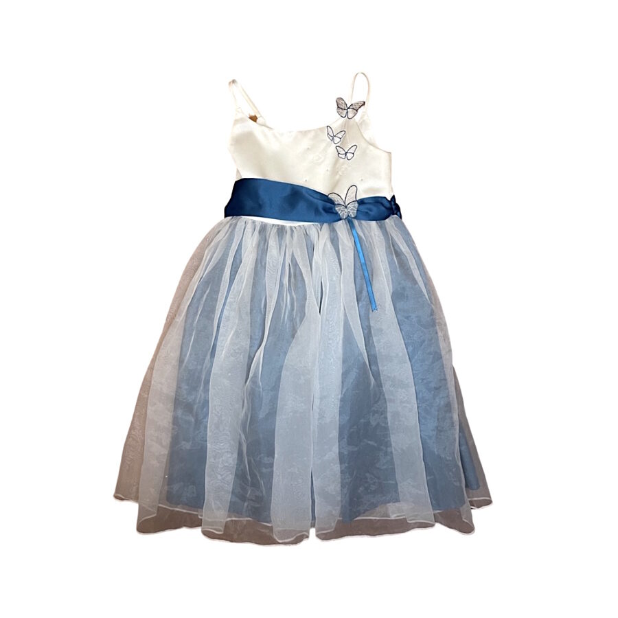 Apraksts: "Wedding collection" firmas svinīga, kupla kleita ar taurenīšu akcentiem.  Kakla daļa aizmugurē atdarināma ar pogām.