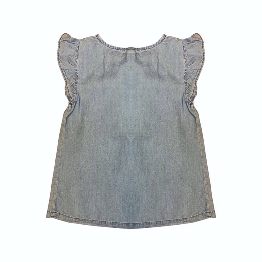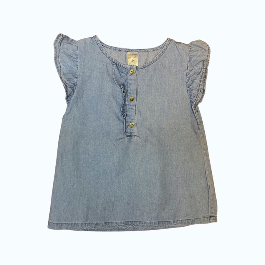 Apraksts: "Carters" firmas zils krekliņš ar volāniņu. Kakla daļa atdarināma ar pogām.