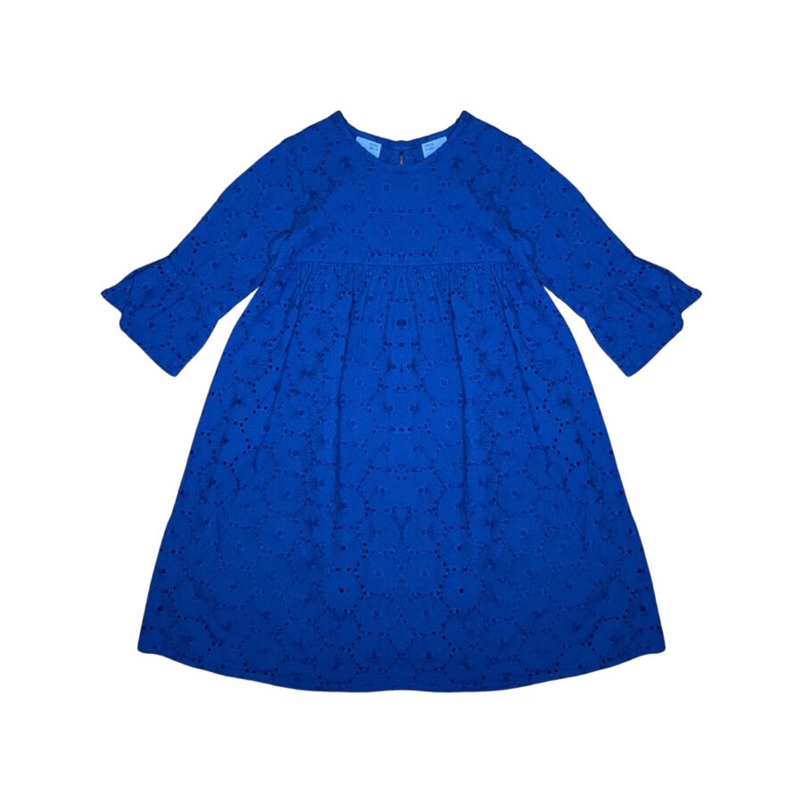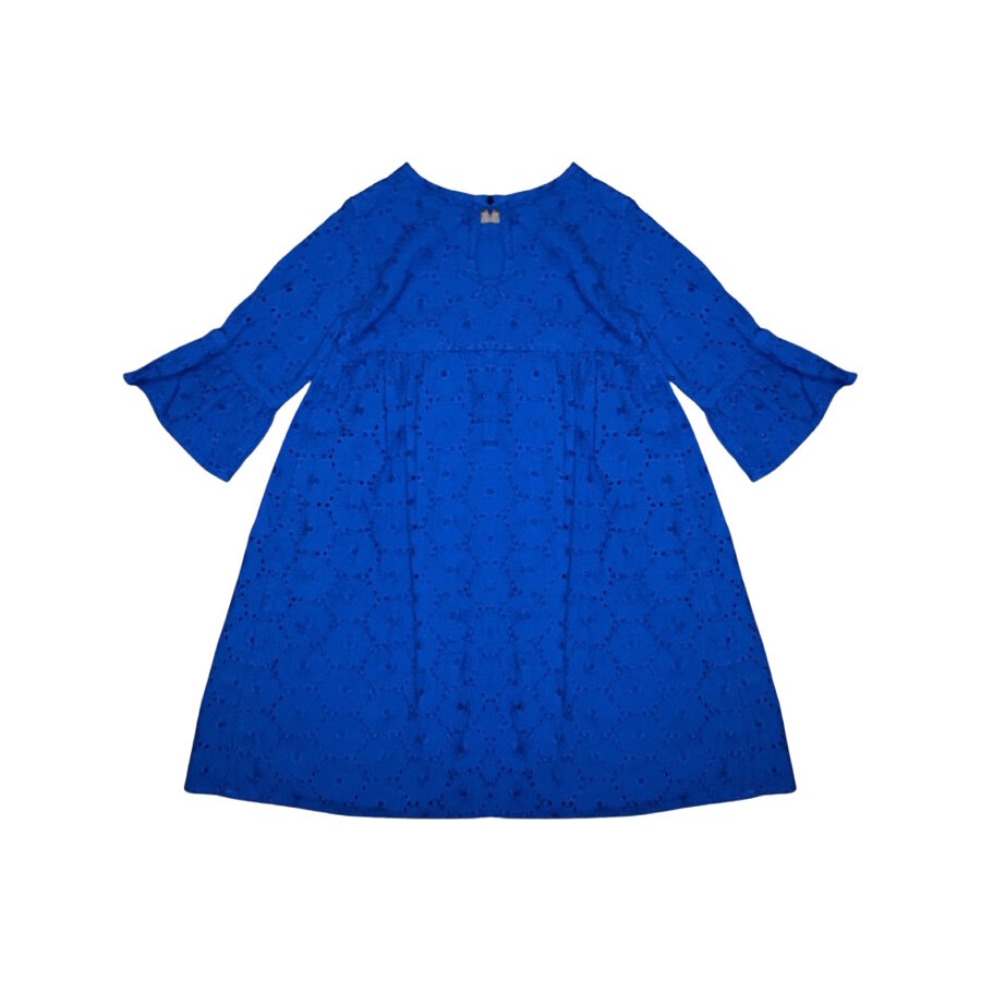 Apraksts: "VRS Kids" firmas zila kokvilnas kleita. Kakla daļa aizmugurē atdarināma ar pogu.