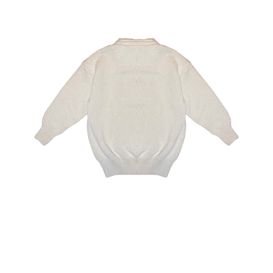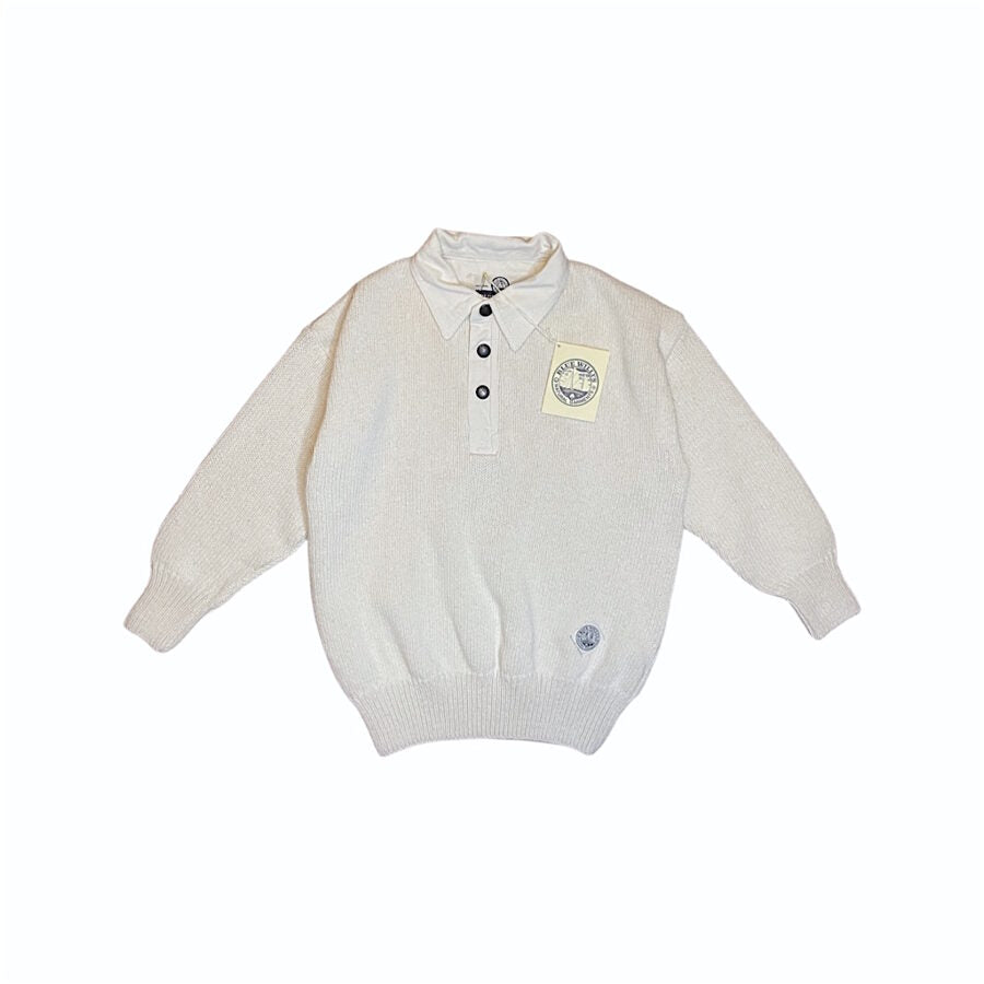 Apraksts: "Blue Willi's" firmas gaišs kokvilnas džemperis ar apkaklīti. Kakla daļa atdarināma ar spiedpogām.